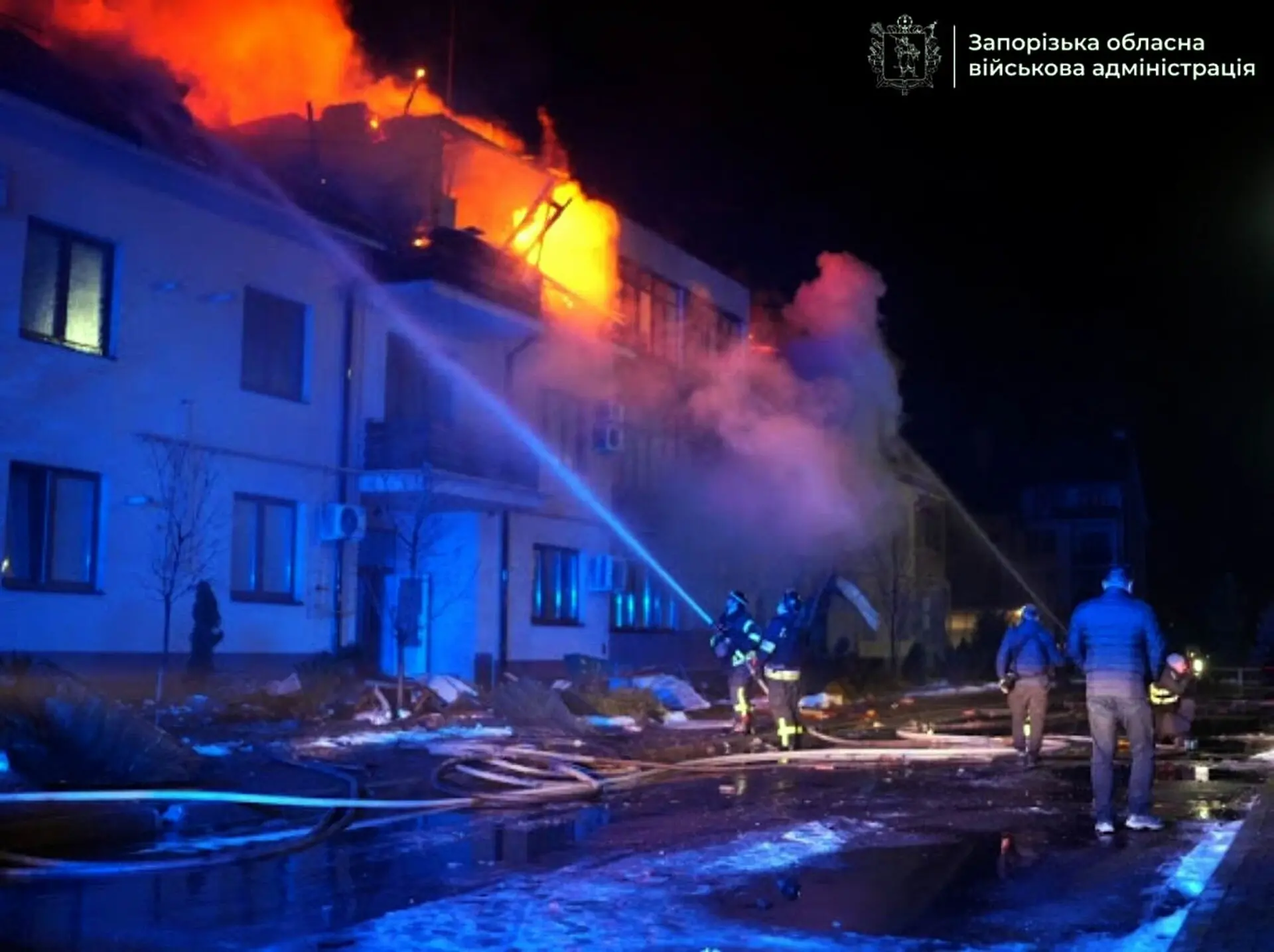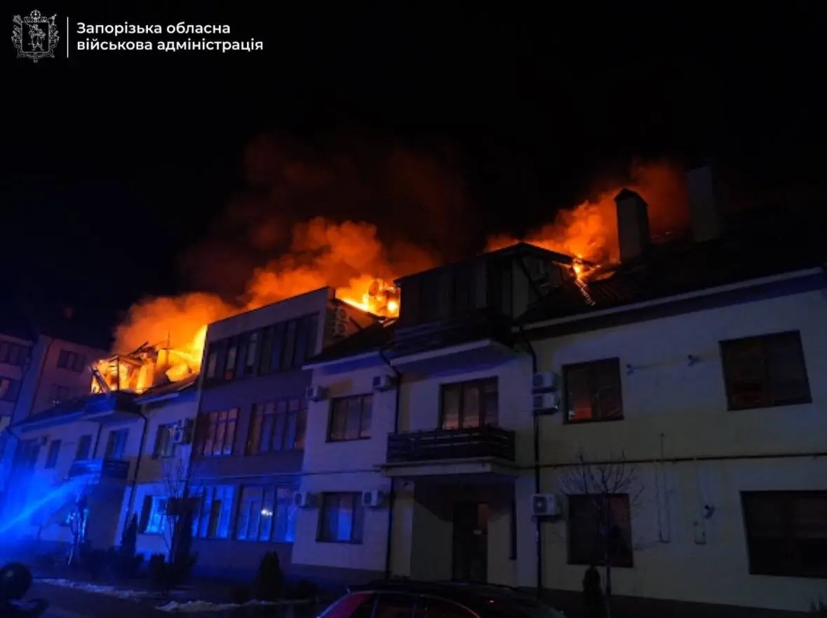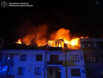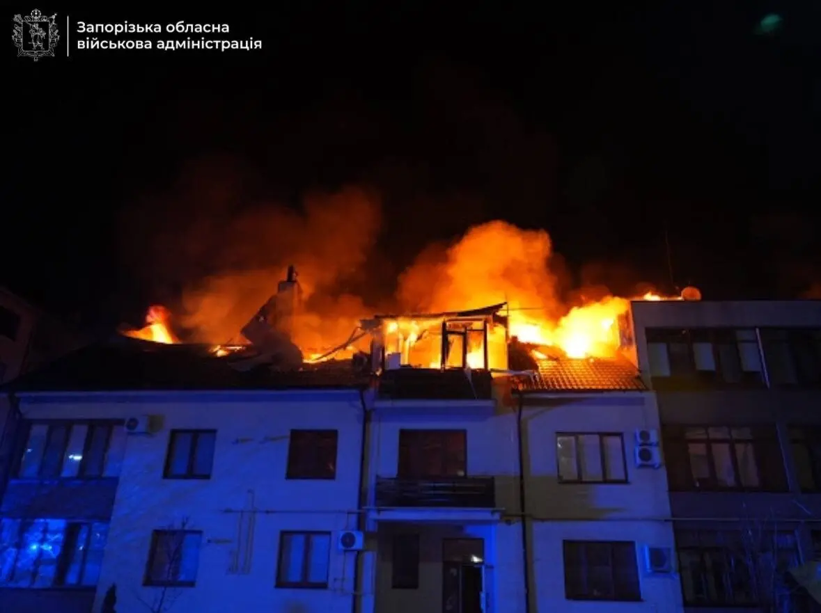 Вражеский шахед разрушил крышу четырехэтажного жилого дома. Произошло возгорание на площади в 300 квадратных метров.