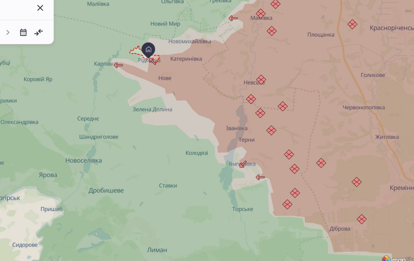 Кроме этого, россияне также имели продвижение возле села Карповка и в населенном пункте Редкодуб на лиманском направлении.