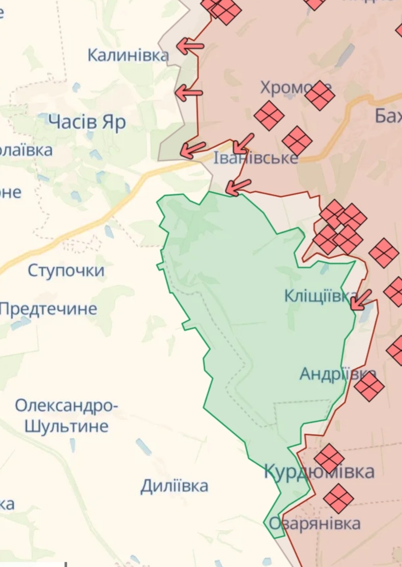 Аналитик портала DeepState Роман Погорелый отметил, что российские оккупационные войска уже подошли к окрестностям города Часов Яр Донецкой области и продолжают продвижение.
