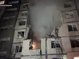 Как сообщили в Государственной службе по чрезвычайным ситуациям, ударный беспилотник разрушил некоторые квартиры с четвертого по шестой этажи дома. После попадания произошел пожар, который работники ГСЧС уже потушили.