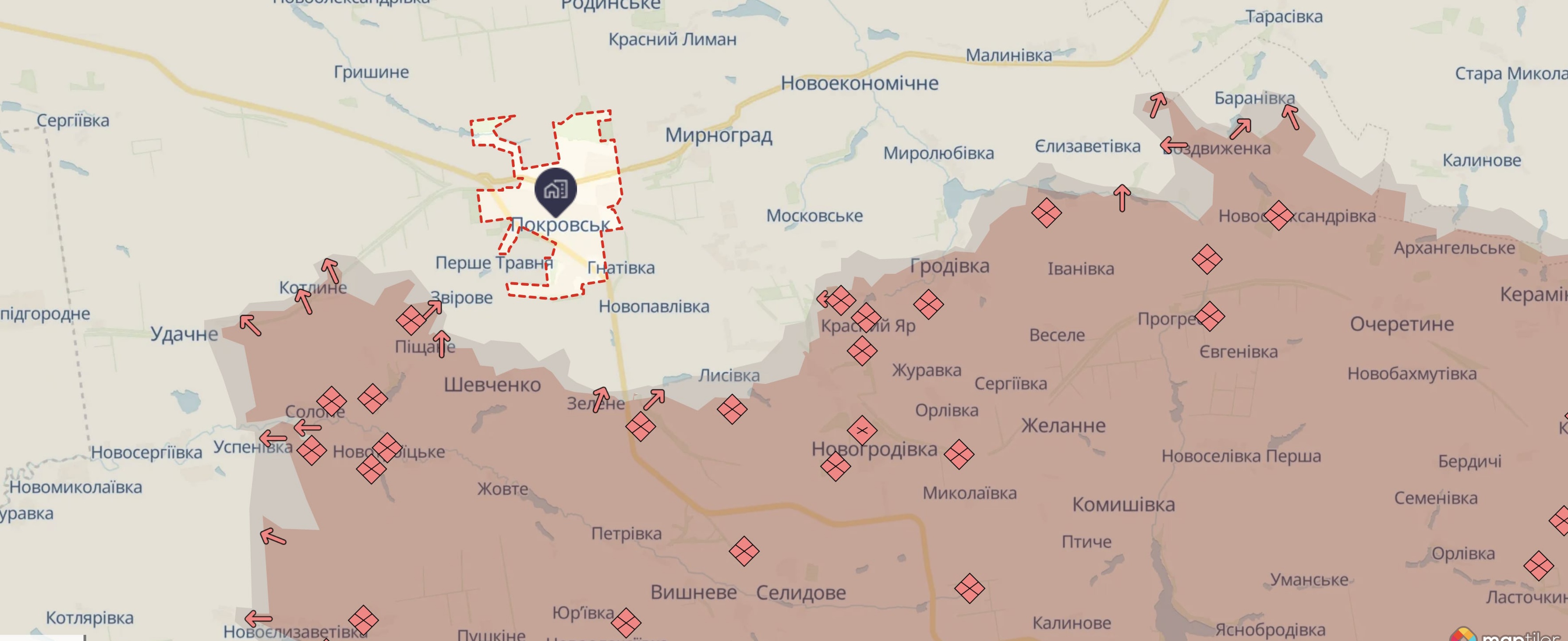 "В Покровске ситуация не развивается, она стабильна... Происходят попытки россиян зацепиться за населенные пункты возле Покровска и продвигаться даже не на сам Покровск, а юго-западнее, чтобы медленно, охватывая город, перерезать те или иные логистические пути", – подчеркнул он.