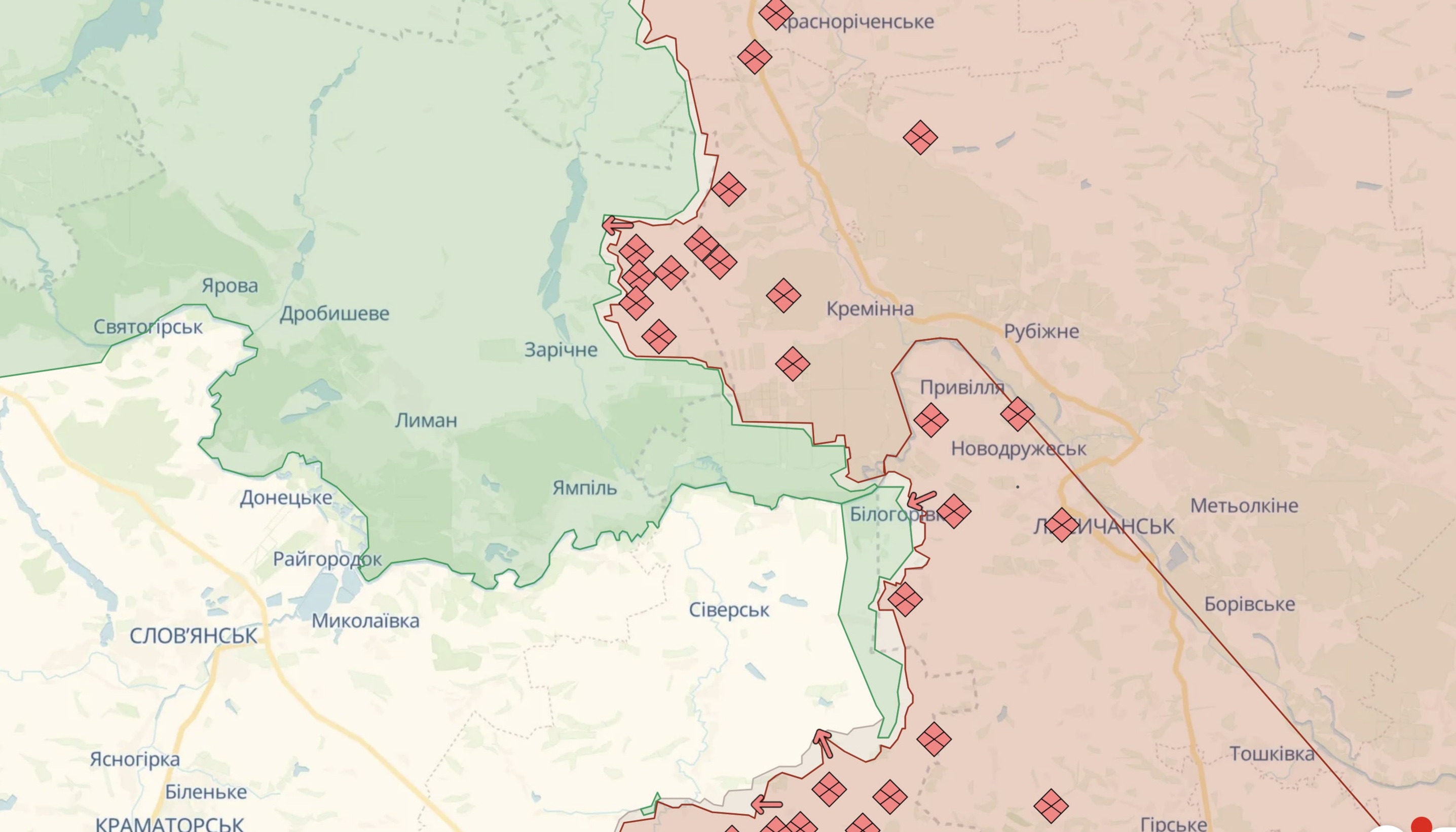 Ранее аналитики DeepState сообщали, что украинские военные отбросили российские подразделения в Серебрянском лесничестве Луганской области и в Клещеевке, расположенной вблизи города Часов Яр Донецкой области.
