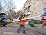 В городе повреждено большое количество легковых автомобилей, которые были припаркованы возле магазина, и два многоэтажных дома.