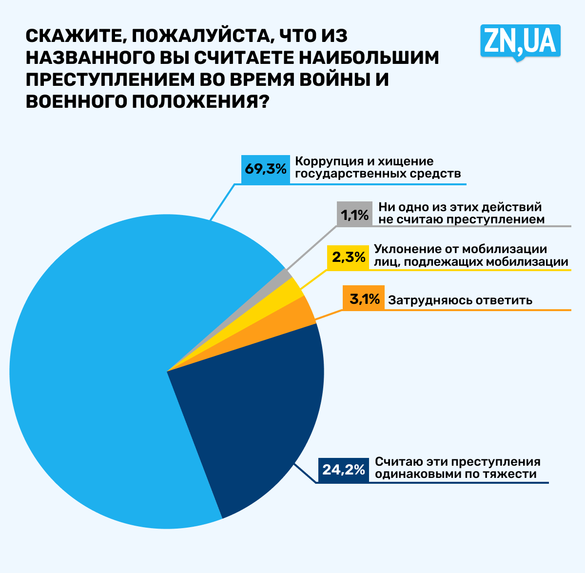 «Скажите, пожалуйста, что из приведенного вы считаете наибольшим преступлением во время войны и военного положения?». Так звучал один из вопросов анкеты ZN.UA для исследования, проведенного с помощью социологической службы Центра Разумкова.