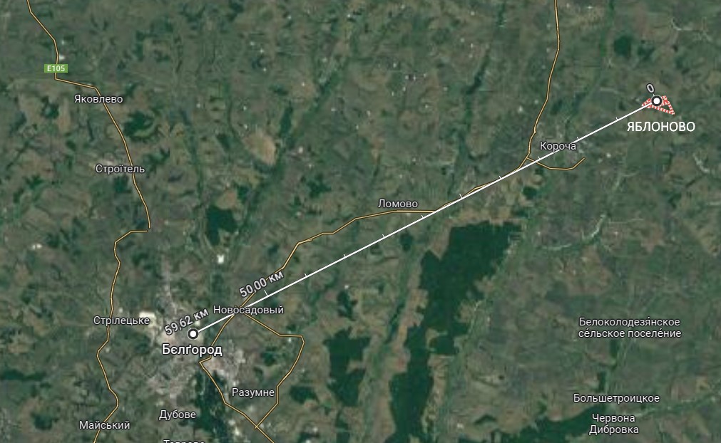 Российский самолет Ил-76, который упал в Белгородской области утром 24 января, летел от Белгорода на северо-восток РФ. К такому выводу пришли аналитики, которые проанализировали видеозапись падения борта. Например, OSINT-сообщество «Скринька Пандори» утверждает, что самолет летел со стороны Белгорода и пролетал в районе села Яблоново. Место съемки было геолоцировано по характерным объектами в селе (50.853291, 37.359842) – дороги, церковь и другие сооружения.