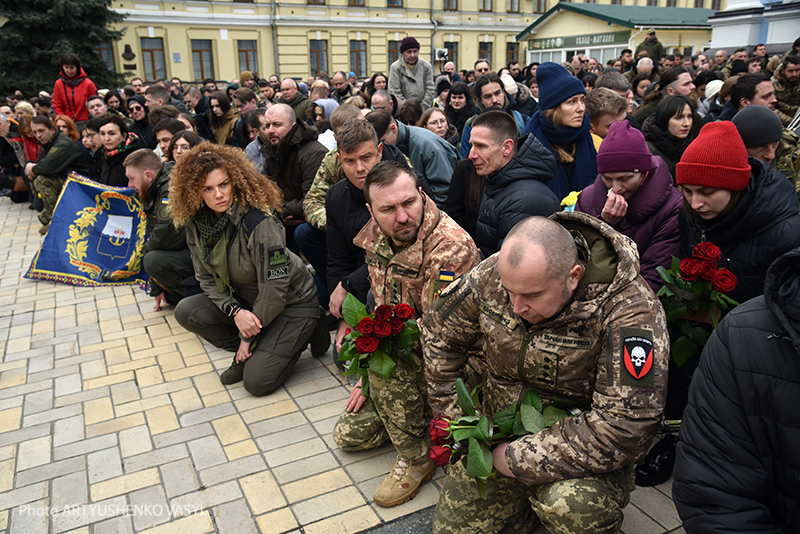 В пятницу, 10 марта, в Михайловском Златоверхом соборе в Киеве прошла панихида по самому младшему Герою Украины Дмитрию Коцюбайло, известному по позывному "Да Винчи".