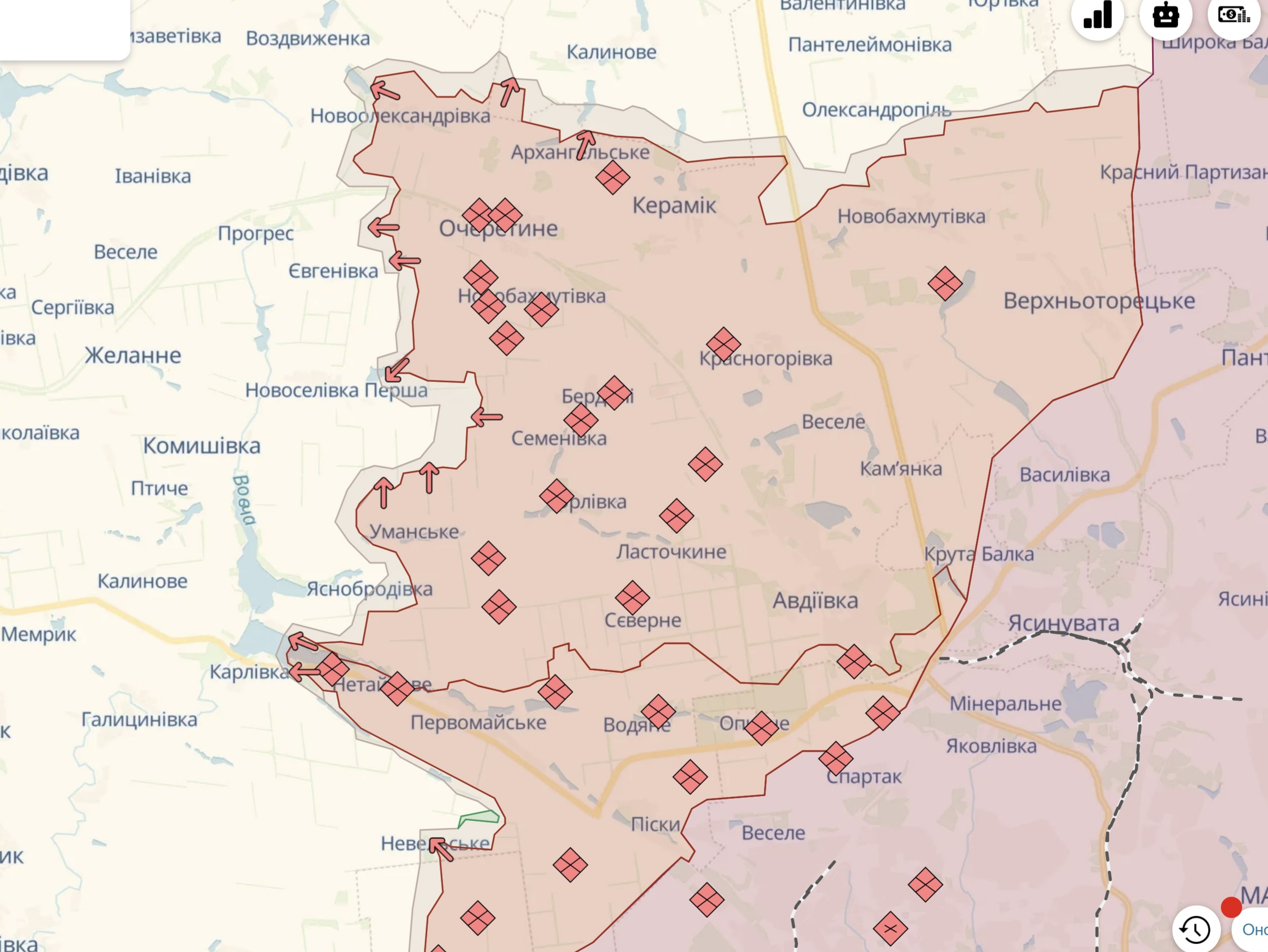 Кроме этого, оккупанты пытаются продвинуться в микрорайон Новый в городе Часов Яр. Сейчас там идет бой.