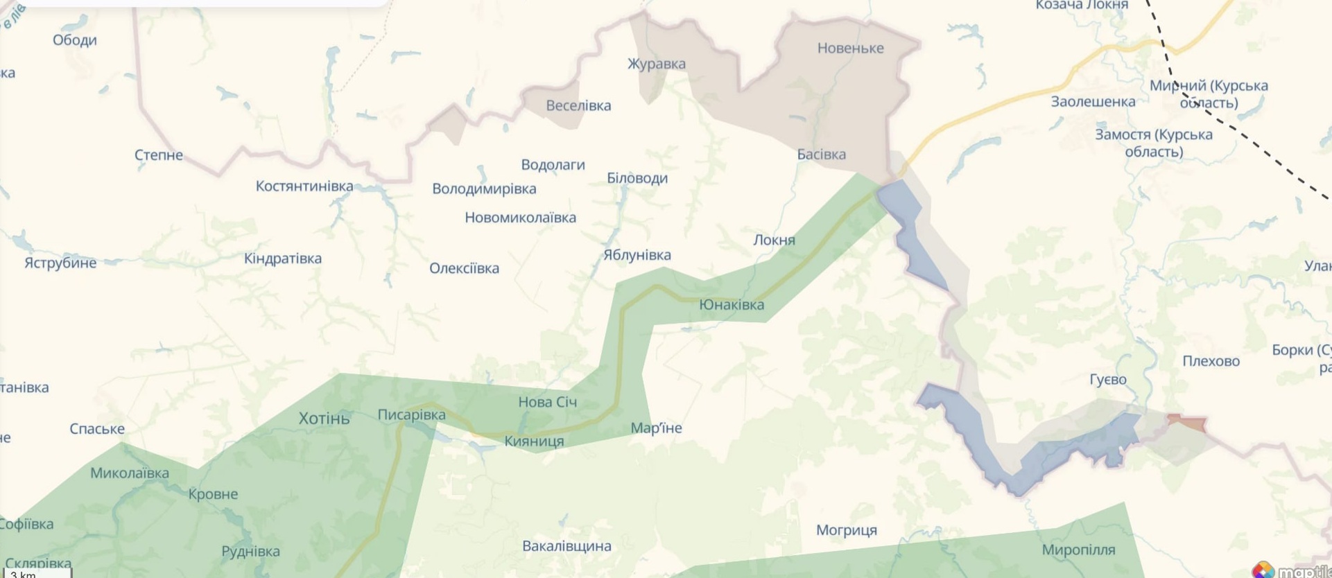Между селами Журавка и Басовка Сумской области увеличилась "серая" зона. В этой зоне также находятся село Веселовка и территория возле села Владимировка. Минобороны РФ заявило, что якобы российские солдаты захватили пограничное село Басовка. Однако Демченко заявил, что Басовка не находится под контролем россиян.