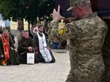 В среду, 9 июля, в Михайловском Златоверхом соборе состоялось прощание с капитаном Вооруженных сил Украины Романом Орищенко — командиром второй мотопехотной роты 72-й отдельной механизированной бригады имени Черных Запорожцев, который погиб 2 июля в результате вражеского обстрела. Об этом сообщает фотокорреспондент ZN.UA Василий Артюшенко.