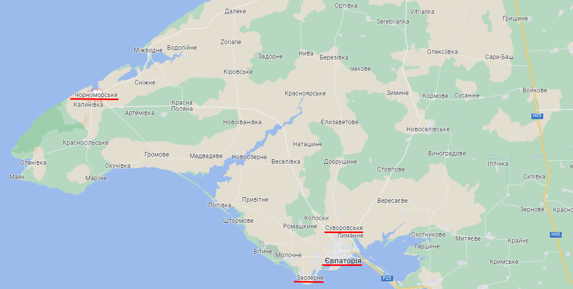 В Евпатории слышали стрельбу со стороны поселка Заозерное на юго-западе и села Суворовское на севере. Несмотря на работу российского ПВО, над городом летают беспилотники.