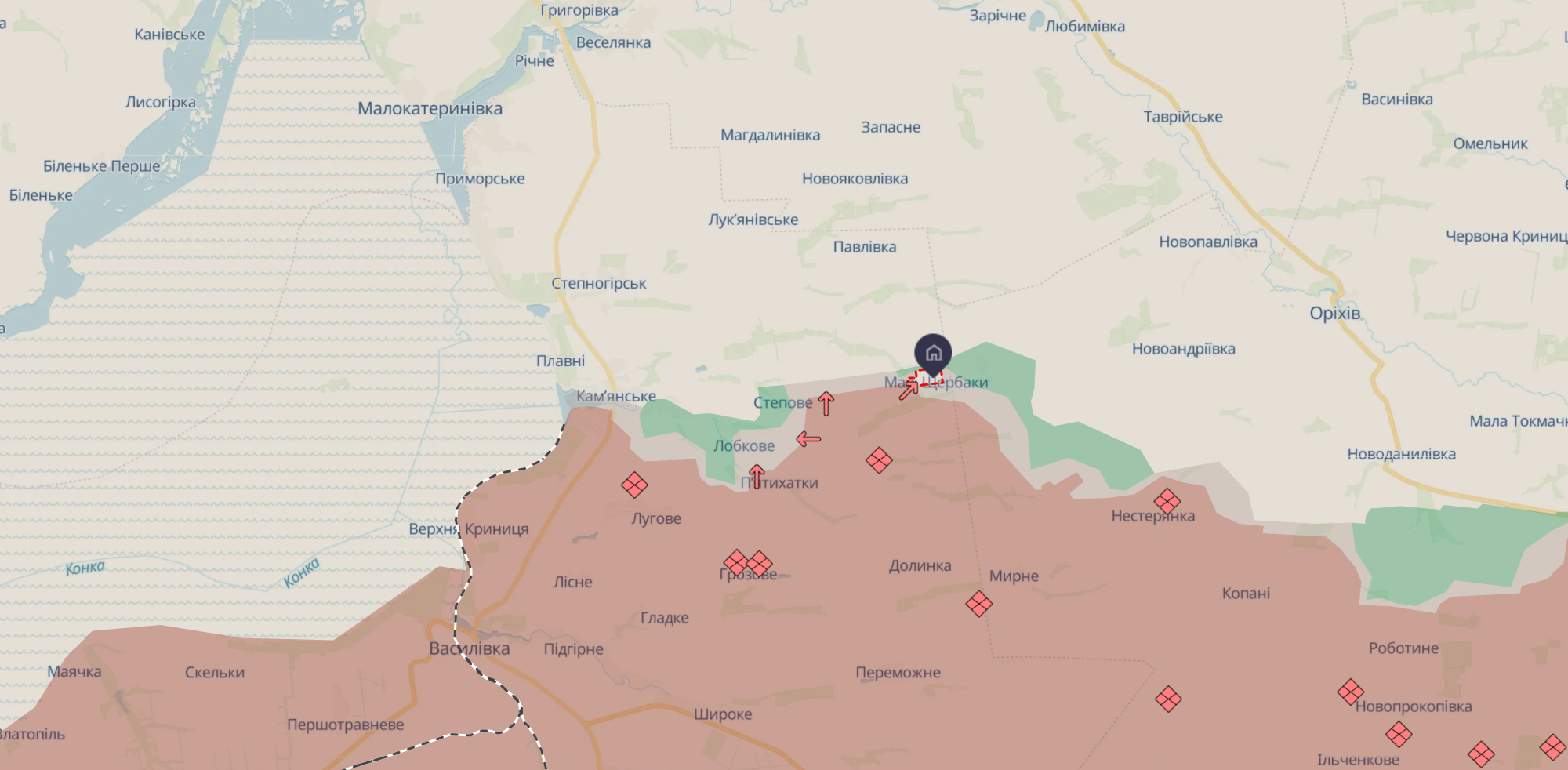 Аналитический портал DeepState обозначил село Малые Щербаки в Запорожской области как "серую зону". Но спикер Сил обороны Юга Владислав Волошин во время эфира на "Новости.Live" отметил, что у оккупантов нет успехов на соответствующем участке фронта.