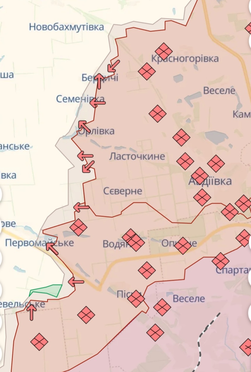 Армия РФ продолжает наступать на нескольких участках линии фронта и сосредоточила свои усилия к западу от Авдеевки и Марьинки Донецкой области, отмечает британская разведка.