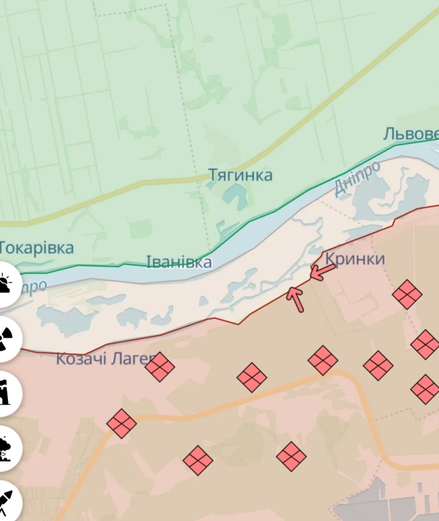 Главнокомандующий ВСУ отметил, что российские войска пытаются вытеснить украинские войска из плацдарма на левом берегу Днепра в районе Крынок Херсонской области.