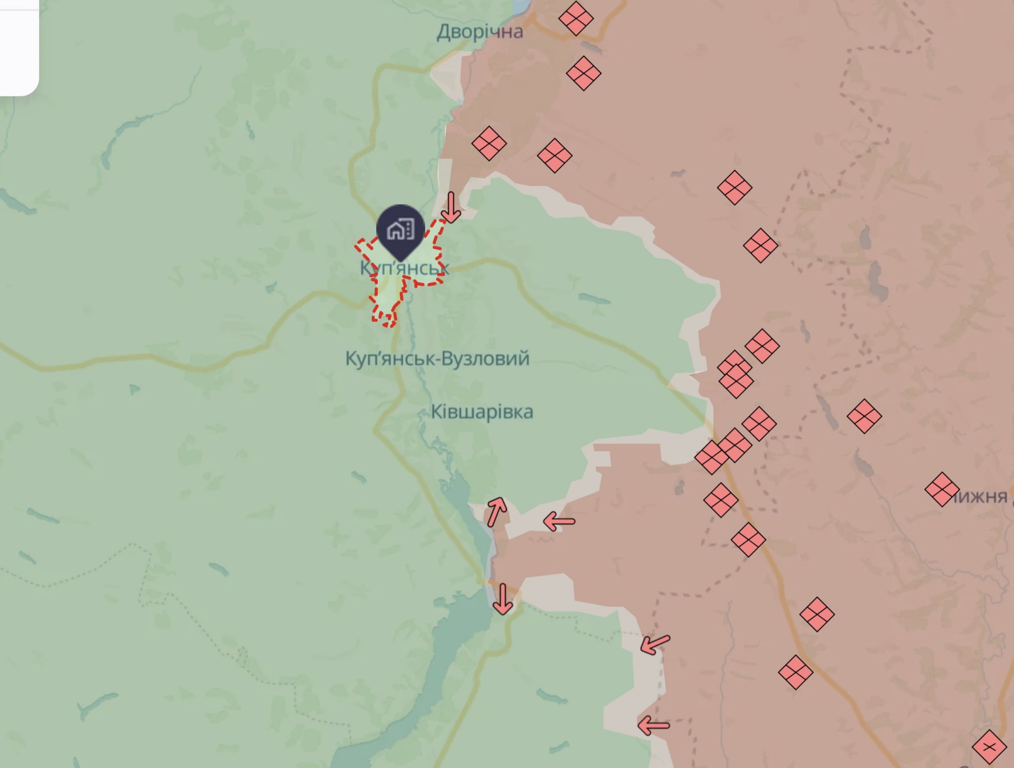 Российские оккупационные войска пытались прорвать оборону украинских военных в городе Купянск Харьковской области, отметил руководитель Центра противодействия дезинформации Совета национальной безопасности и обороны Украины Андрей Коваленко в Telegram.
